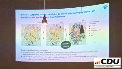 Am Ende der Veranstaltung stellten die Vorsitzenden der drei Ortsunionen, Silke Busch für Handorf, Markus Deitermann für Gelmer/Dyckburg sowie Walter von Göwels, der die Diskussion leitete, für Mauritz-Ost fest, dass es eine gelungene Veranstaltung gewesen sei. Angesichts der großen klimapolitischen Herausforderungen und der Aufgaben für jeden Haus- oder Wohnungsbesitzer, in den kommenden Jahren auf CO2-neutrales Heizen umzustellen, benötige es noch zahlreiche solcher Veranstaltungen.